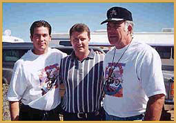Left: Dan Sullivan (Gene's son), Lawrence Legend and Gene at Robbie Knievel's Grand Canyon jump in 1999. (Photo courtesy of Lawrence Legend) Right: Landing at one of Gene's ministry outreaches.