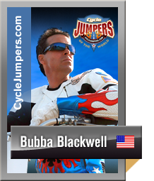 He climbed aboard his red, white and blue bike and soared into the record books by leaping over 15 full-size tour buses for the UPN daredevil television program, "I Dare You". Bubba flew well over 157 feet to shatter is own previous record of 14 buses that he achieved just six months earlier in Del Mar, California on July 4, 1999 when Bubba broke Evel Knievel's record jump of 13 buses (Evel landed on the 14th bus in Kings Island in 1975).