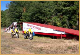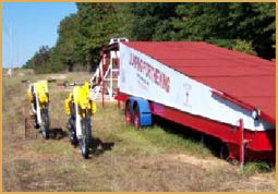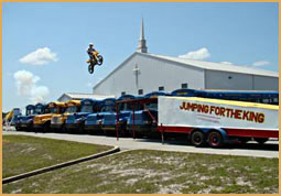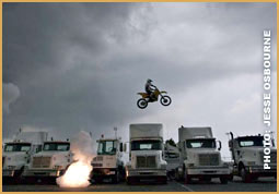 Left: Jumping 9 school buses at Calvary Baptist Church in Middleburg, Florida on April 9, 2011. Right: Aaron jumping 9 semi-trucks in Evansville, Indiana in 2006.
