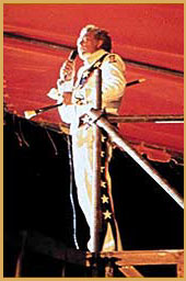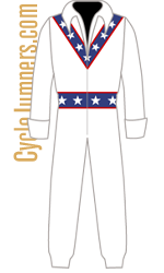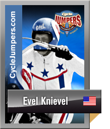 On September 8, 1974, Evel attempted to jump the Snake River Canyon in what he called his "skycycle". He didn't make it across the 1/4 mile canyon because the parachute deployed. He survived on of his most dangerous stunts he ever tried. According to ABC's "Wide World of Sports", this was one of the so called "happenings" of the 1970's. May 26, 1975 Evel traveled to London, England to jump 13 single-decker buses at Wembley Stadium in front of a sold out crowd of 90,000 people. Evel didn't have enough speed when he hit the takeoff ramp and landed on the last bus which sent him crashing onto the grounds of Wembley. At this jump Evel vowed he would never jump again. Of course, he couldn't quit. October 25, 1975 Evel was back state side trying to jump 14 Greyhound buses at Kings Island Amusement Park in Ohio. He landed on the 14th bus, but held on. The frame of the bike actually cracked on this jump. This was his last big jump attempt he tried.
