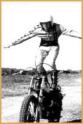Left: Jim standing on his speeding motorcycle. This was one of his specialties. Special thanks to Jim Avery for the photos and information!