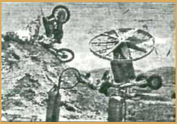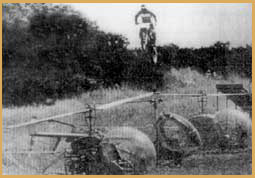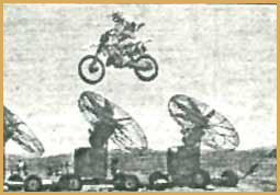 An earth ramp-to-earth ramp jump over the the whirling blades of four "Ritter" fans!